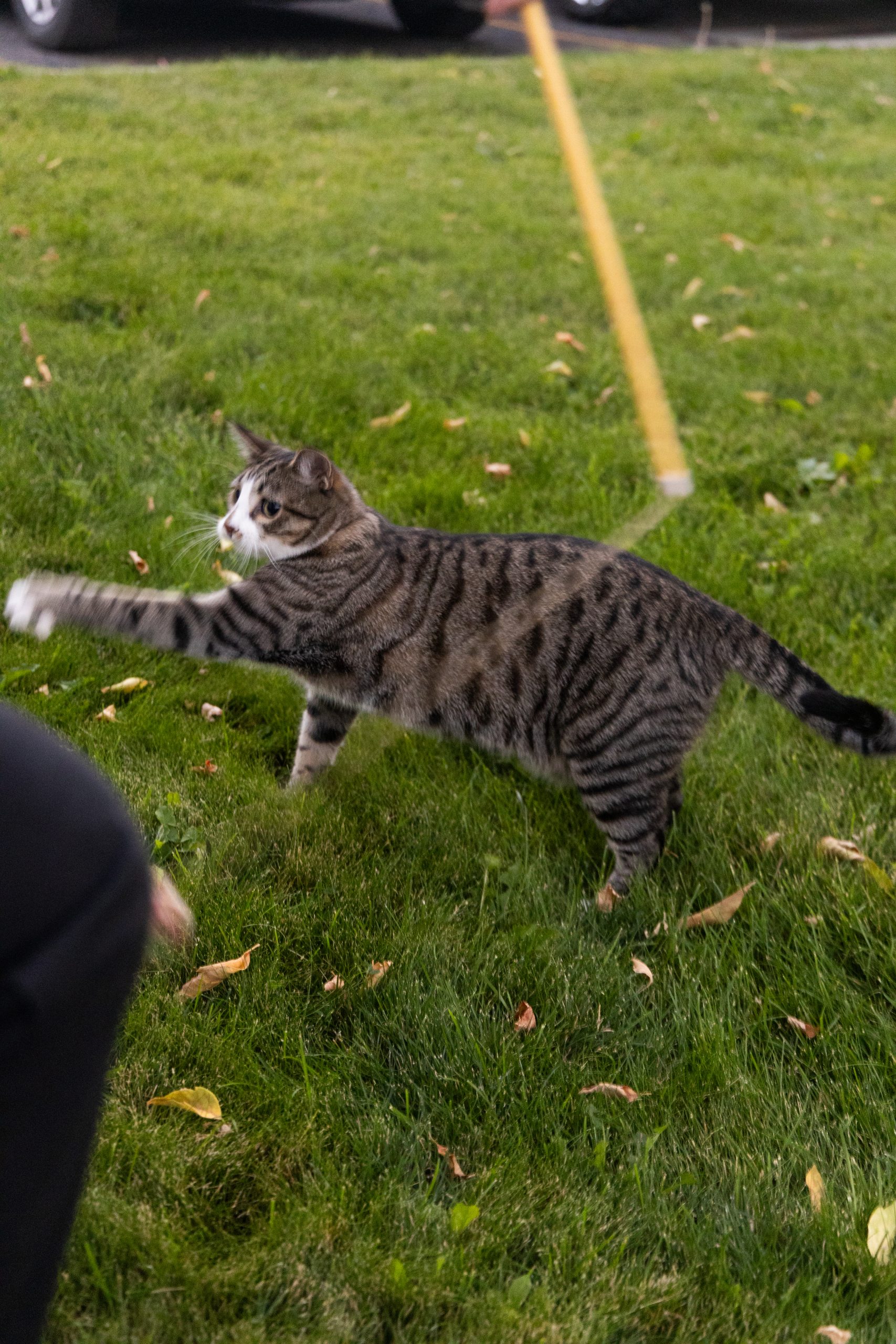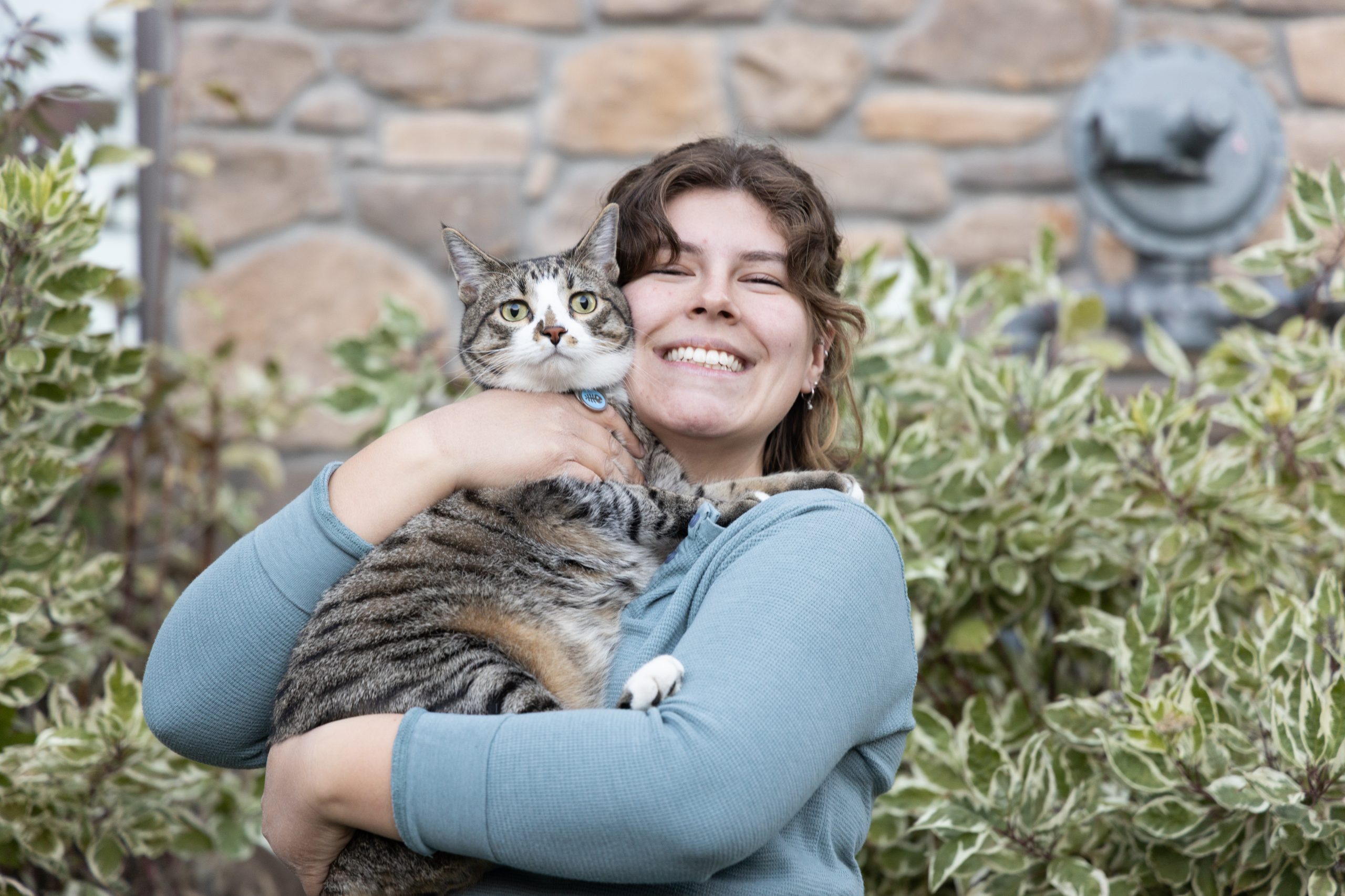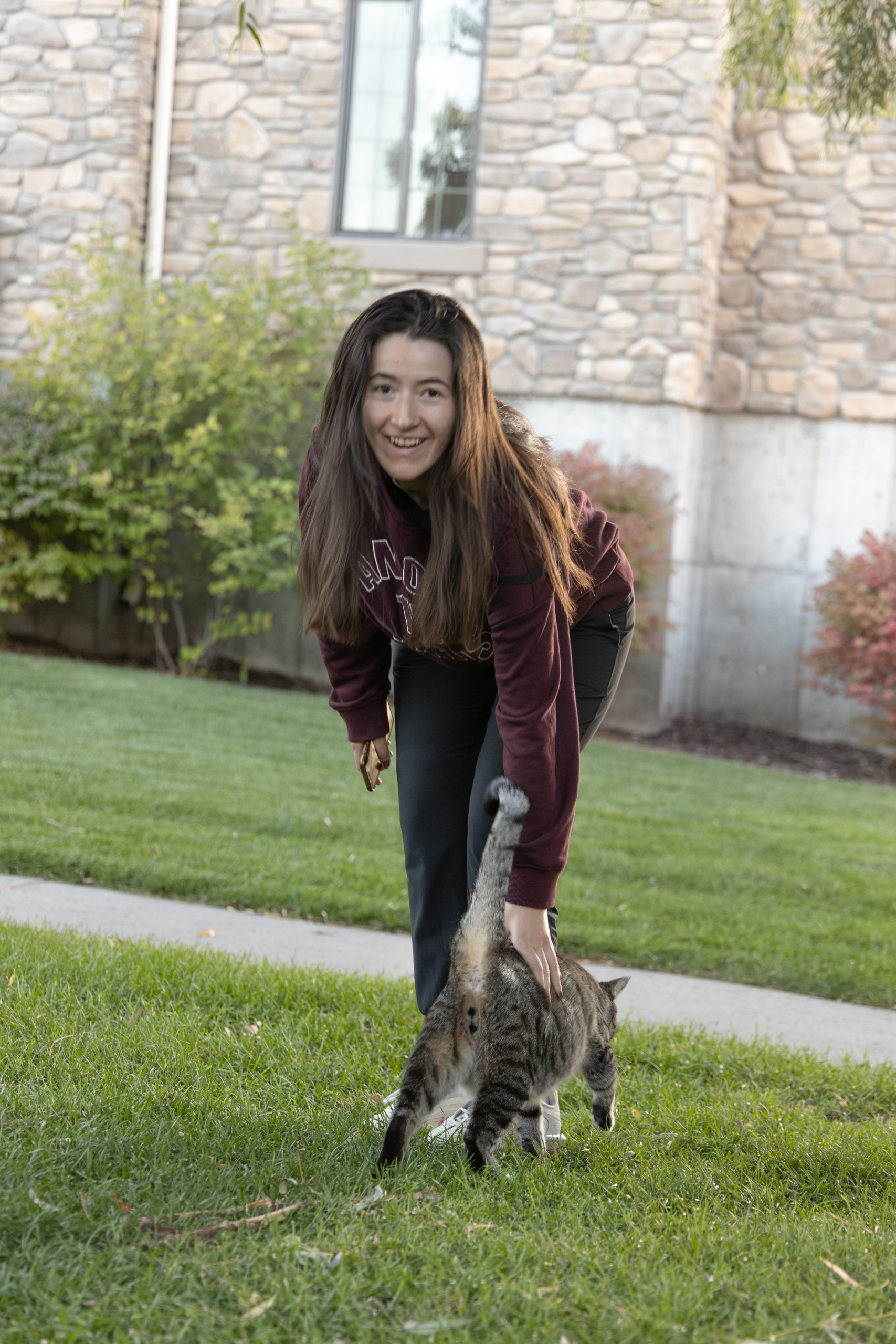 So, we have Ollie and Aluara. Ollie followed Aluara to college to support her, and Aluara loves every minute he is here. So we went on a walk to be able to show how cats make everything better.