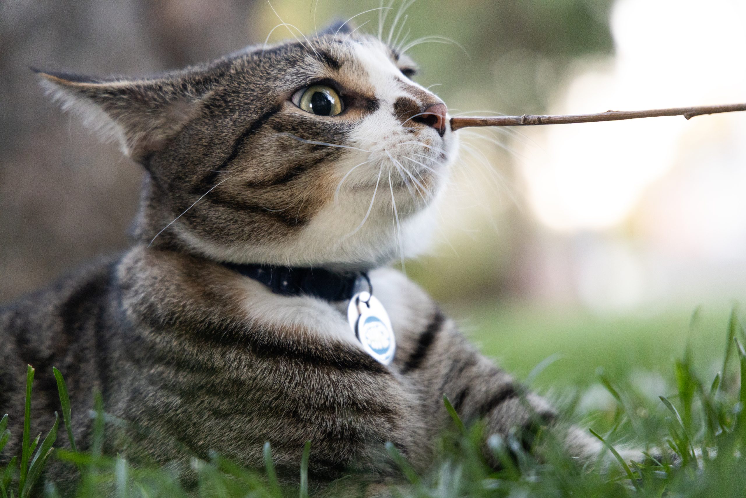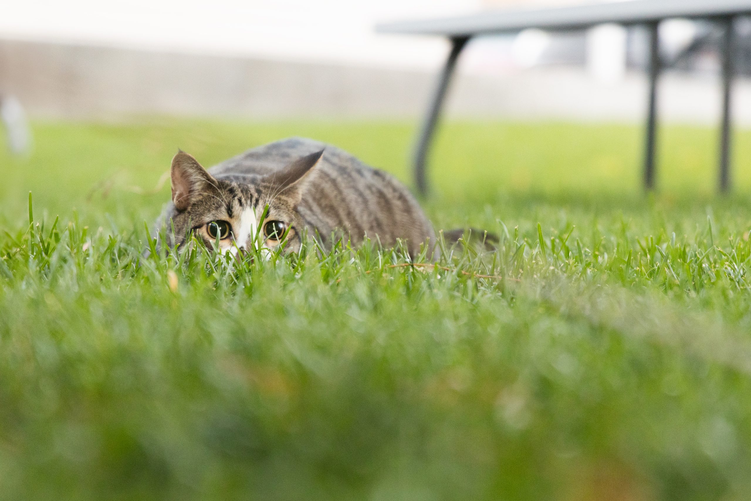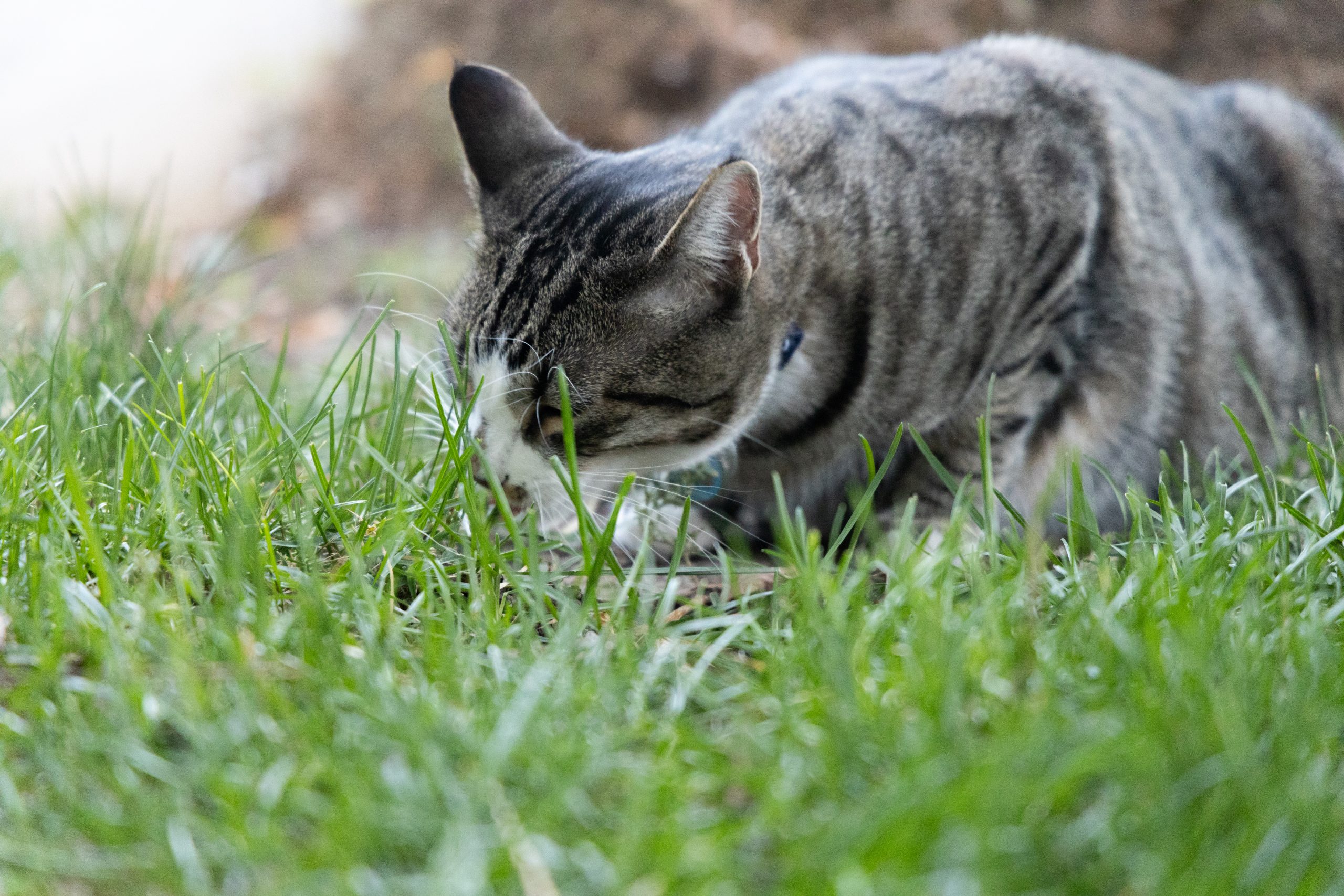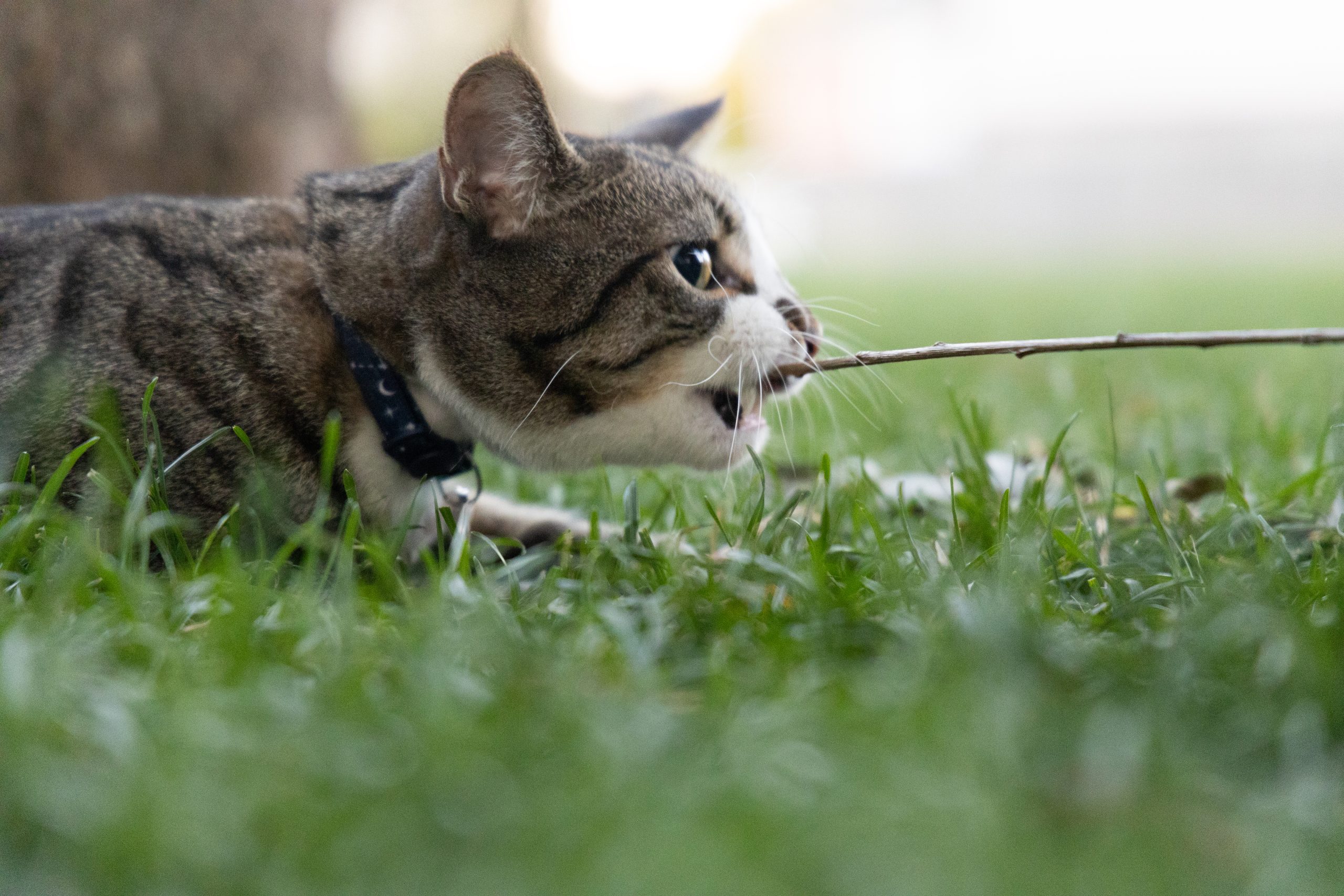 Most animals eat grass to deal with an upset stomach. However, Ollie loves grass because it tickles that part of his brain that deals with prey. So we have some amazing shots of him eating grass and chasing sticks.